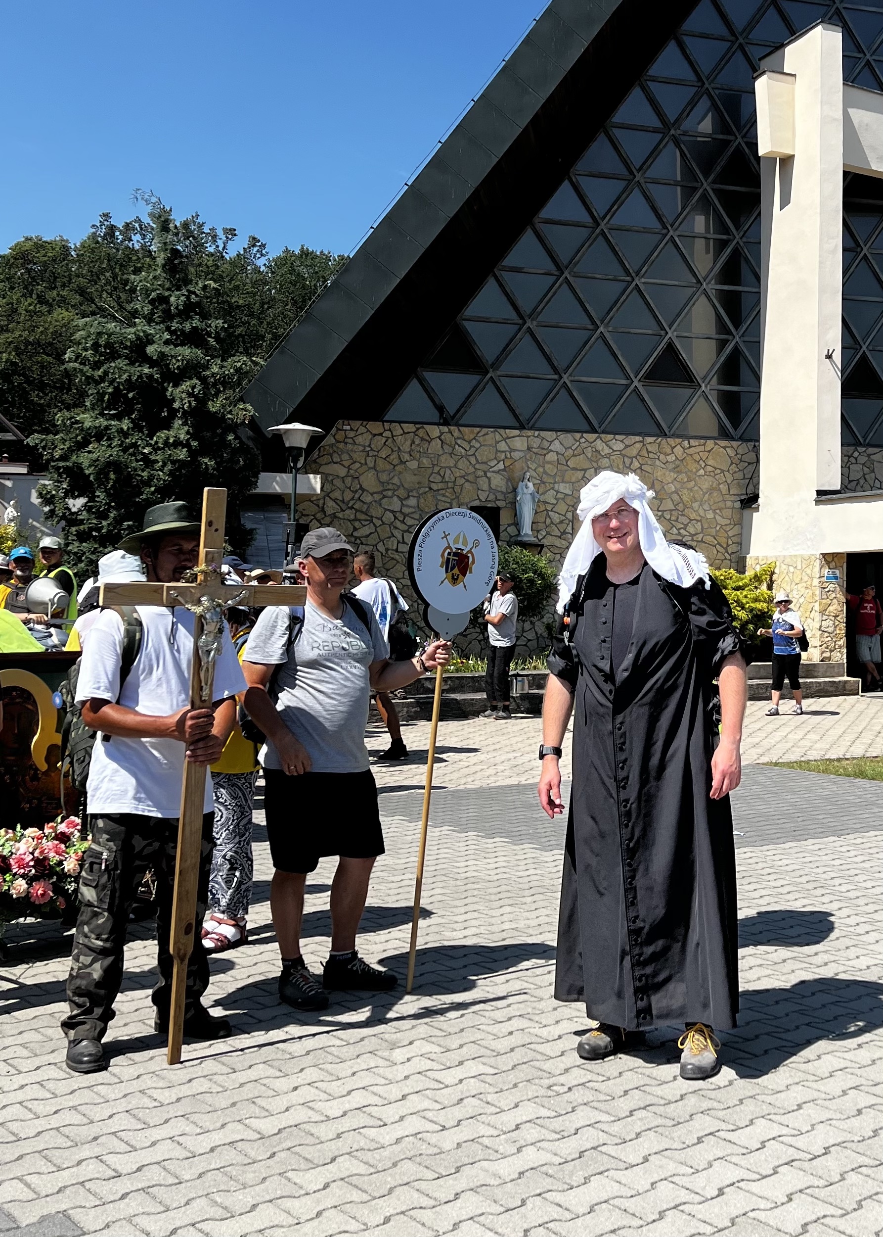 Po raz 29 nasz Ksiądz Proboszcz Robert pielgrzymuje do Częstochowy, pierwszy raz w 1982r. pielgrzymował jako licealista do tronu Matki Bożej z Wrocławia. W diecezji wrocławskiej często prowadził grupę pokutną, która jak to sam wspomina „wychodziła pierwsza i przychodziła ostatnia” ponieważ po drodze nawiedzała Najświętszy Sakrament w każdym z mijanych kościołów oraz modliła się wszystkimi godzinami Liturgii Godzin. Kiedy tylko została powołana nasza diecezja a wraz z nią Świdnicka Piesza Pielgrzymka od razu chętnie włączył się w ruch pielgrzymi naszej diecezji. Jako ciekawostkę możemy zdradzić, że jako najcięższą pielgrzymkę Ksiądz Proboszcz wspomina swoje drugie „rekolekcje w drodze” kiedy to codziennie padało i po paru dniach nie było nic suchego w plecaku.